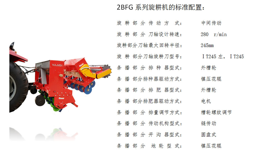 旋耕施肥播種機(jī)是一款多功能農(nóng)業(yè)機(jī)械設(shè)備,它集旋耕、施肥、播種、覆土、鎮(zhèn)壓于一體,一次作業(yè)可完成多項(xiàng)任務(wù),減少機(jī)械進(jìn)地次數(shù),節(jié)約成本。微電腦電機(jī)控制施肥,無級(jí)調(diào)速,專用設(shè)計(jì)不銹鋼導(dǎo)肥槽,保證撒肥面積均勻,鎮(zhèn)壓輥后驅(qū)動(dòng),增加防滑裝置,保證播種質(zhì)量,配套圓盤開溝器,保證種子落地準(zhǔn)確,防止纏草,一機(jī)多用,經(jīng)過調(diào)整可以切換為花生平播或壟播,小麥、旱稻、油菜、高梁平播等多種狀態(tài)。主要功能如下:
