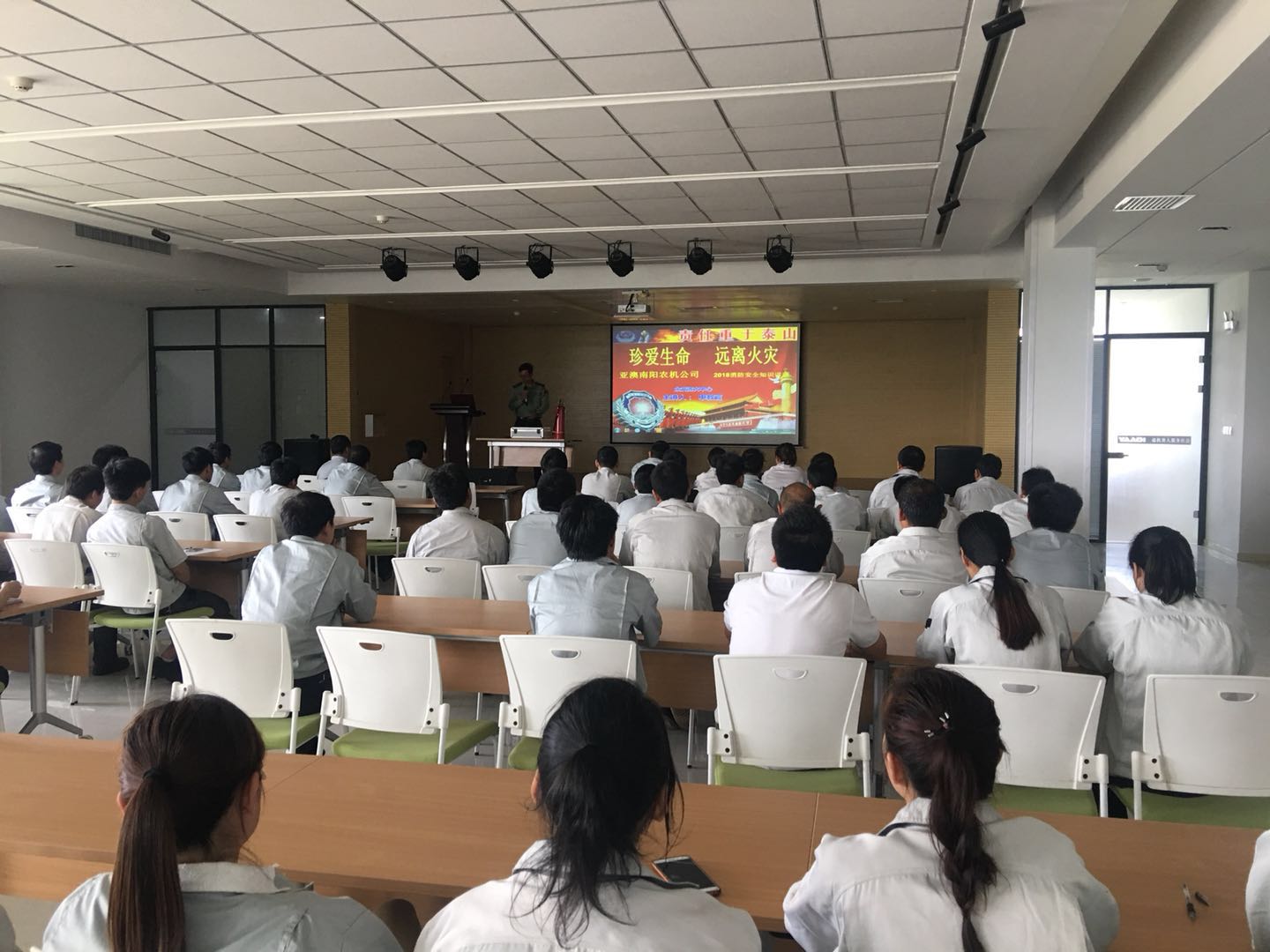 4月29日是,在節前最后一天,亞澳農機全體員工在二樓多功能廳進行了“珍愛生命,遠離火災”為主題的消防安全培訓,