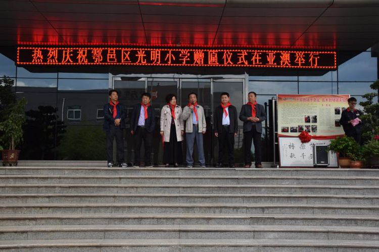 2018年4月28日上午10時(shí),西安市鄠邑區(qū)光明小學(xué)為亞澳農(nóng)機(jī)總部贈(zèng)匾儀式順利舉行,鄠邑區(qū)政府辦副主任、機(jī)關(guān)事務(wù)管理局局長(zhǎng)滑益平,區(qū)經(jīng)貿(mào)局副局長(zhǎng)趙曉利,區(qū)中小企業(yè)服務(wù)中心趙建威,區(qū)光明小學(xué)校長(zhǎng)馬文博、副校長(zhǎng)張忠偉、王冰榮及老師、同學(xué)們,以及亞澳農(nóng)機(jī)董事長(zhǎng)史可器、總經(jīng)理史森強(qiáng)、副總經(jīng)理史炳直等亞澳全體管理干部及黨員、工會(huì)委員、職工代表等參加活動(dòng)。局副局長(zhǎng)趙曉