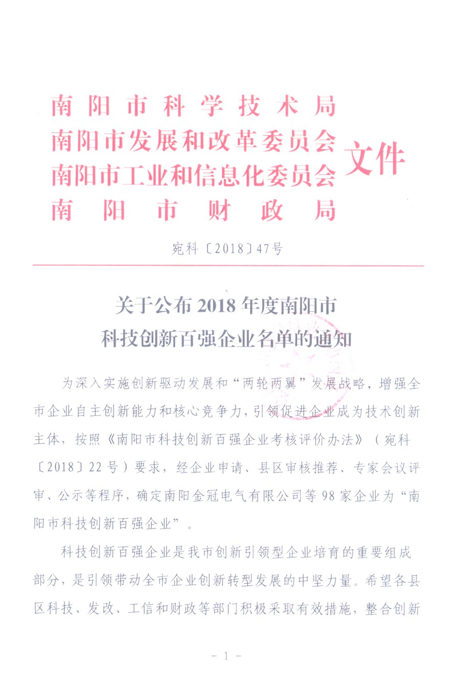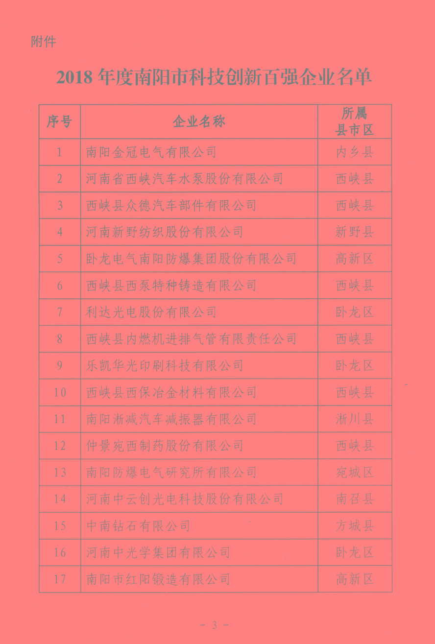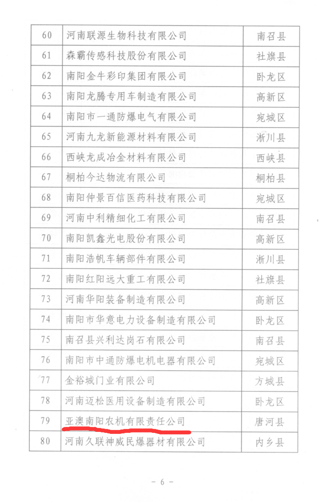 為深入實施創新驅動發展和“兩輪兩翼”發展戰略,增強全市企業自主創新能力和核心競爭力,引領促進企業成為技術創新主體,按照《南陽市科技創新百強企業考核評定辦法》要求,亞澳農機等6家企業榮獲此榮譽。