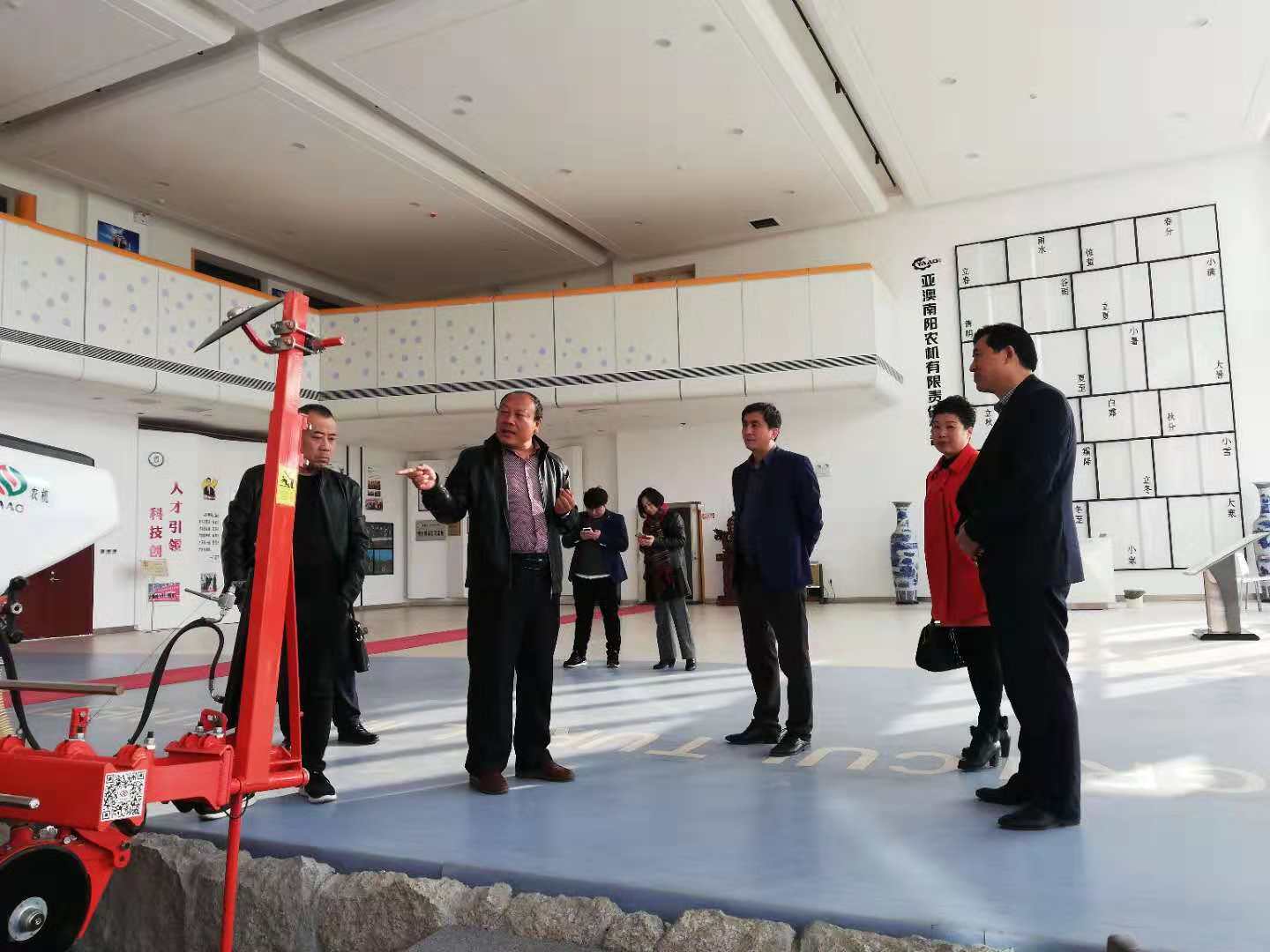 郭總首先向李軍副主席一行介紹了展廳內(nèi)展示的代表性機(jī)具,李軍副主席指出,這些機(jī)具刷新了我對(duì)農(nóng)耕機(jī)具的認(rèn)知。