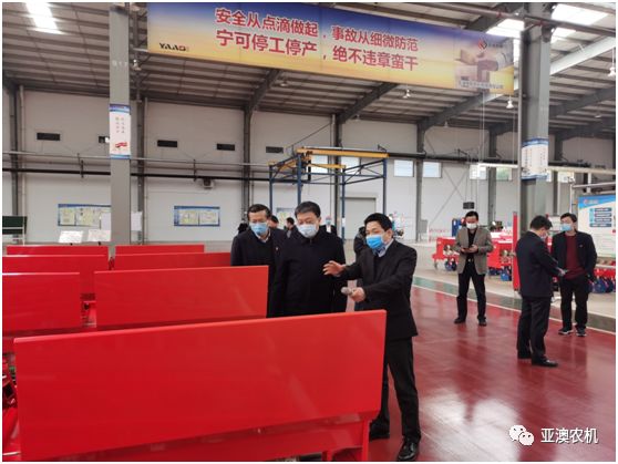 霍好勝一行在亞澳農(nóng)機(jī)調(diào)研與公司總經(jīng)理史炳哲進(jìn)行深入交流,詳細(xì)了解疫情防控、復(fù)工進(jìn)度和遇到的困難等問(wèn)題,并深入生產(chǎn)區(qū)一線(xiàn)現(xiàn)場(chǎng)查看企業(yè)的生產(chǎn)狀況。
