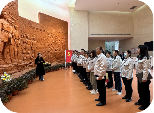 活動現(xiàn)場、各位員工代表手持鮮花列隊肅立在莊嚴(yán)的烈士紀(jì)念碑前,依次將鮮花擺在紀(jì)念碑石階上,駐足凝視、以寄哀思,隨后全體鞠躬、默哀,向革命先烈們致以崇高的敬意、表達(dá)無限的緬懷之情。