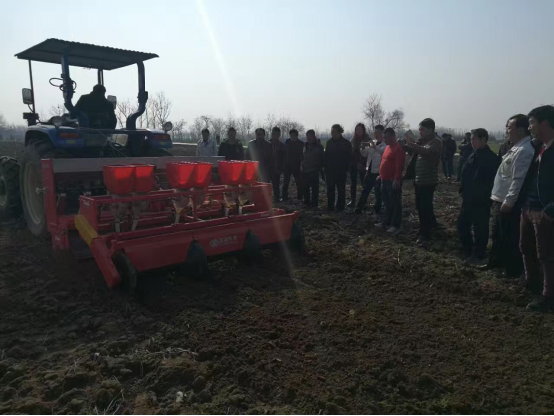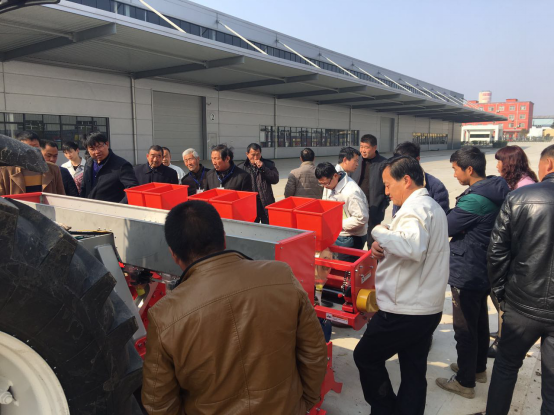 現場會上,亞澳專業技術人員及銷售經理對我廠新研發的花生精量播種機做了詳細介紹,各鄉鎮社員及各站站長針對花生種植技術、施肥方法和機械化播種等方面做了詳細講解。隨后,60名用戶和農技人員一同觀摩了機械化播種演示。