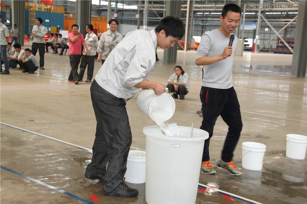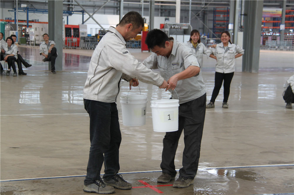 下午13:30在運動場出現了擺放有序的水桶,這是我們的第二項活動:精益運輸大接力取水點的距離分別大于等于10米,每個桶分別裝滿10L水,每組隊員是五個人,要在120秒內完成大桶水量的收集,超過120秒的隊員淘汰出局,在規定的時間內,水量收集多者獲勝,抽簽決定出場順序,這項活動是讓員工明白精益化生產體系的精髓所在之處;減少過程浪費,實現低成本的快速交付,滿足客戶的同時,做到細節控制,提升產品使用價值,提升公司盈利空間。比賽開始了只見隊員雙手提起20L的水往下一站的隊友那里送,中間會有灑水會很累,但是每個人都為了自己隊伍的榮譽拼盡全力向終點奔去,旁邊的隊友為他們加油、吶喊,最終自焊獲得第一名。